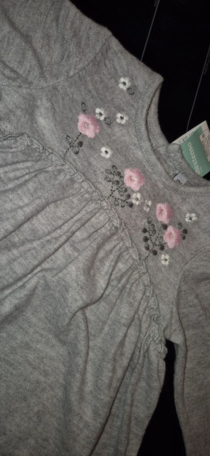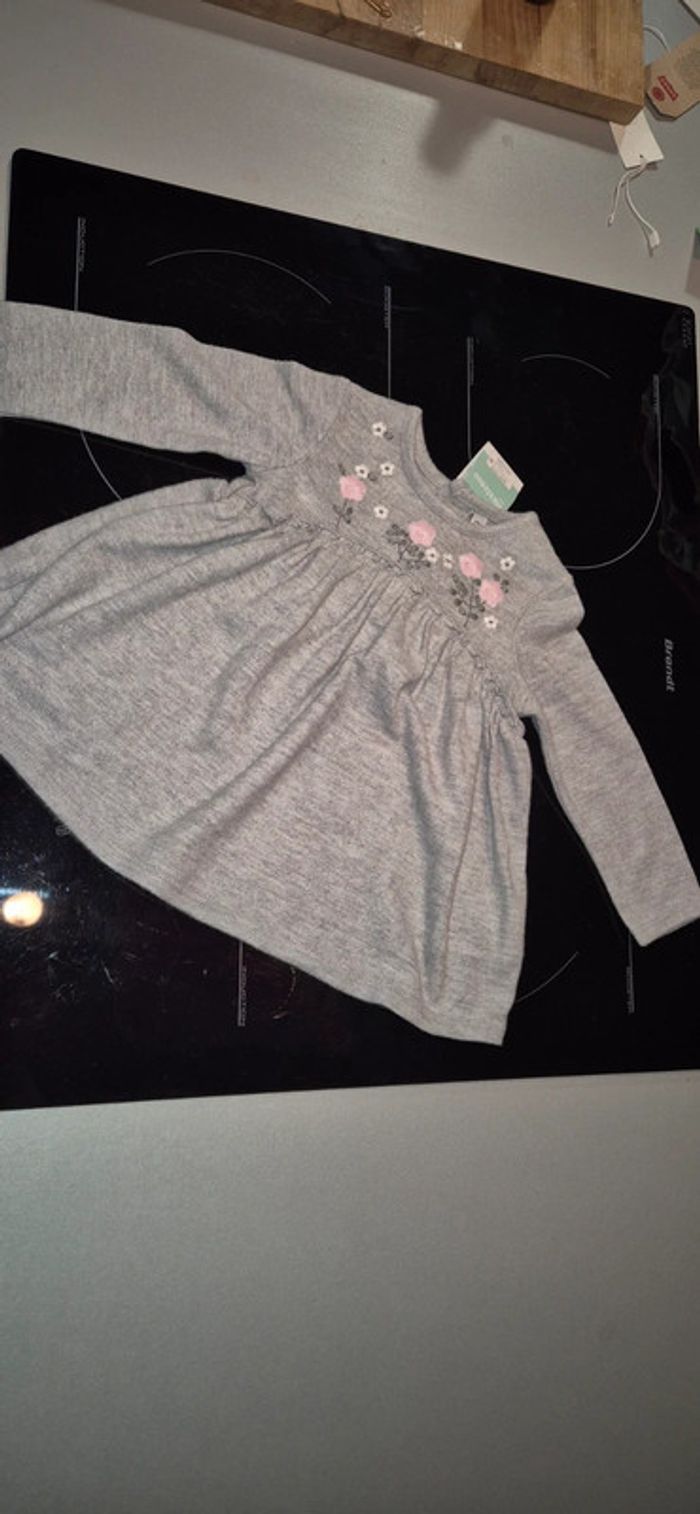 Vends robe grise toute douce Fleurs brodées sur la poitrine Neuve