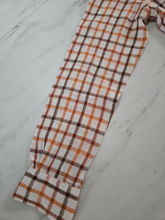 Elle est en état impeccable. De couleur crème à carreaux oranges et marron. Toute les dimensions se trouvent sur les photos