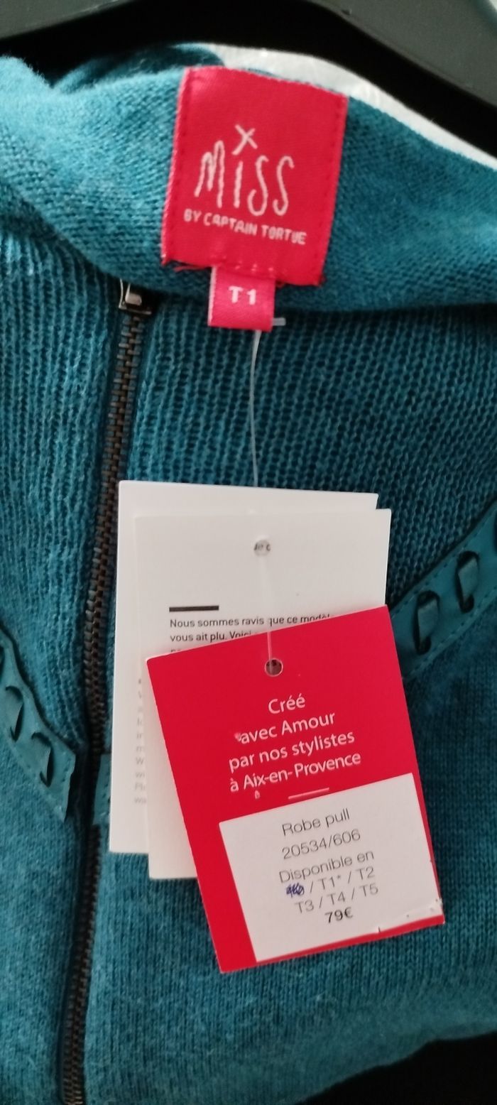 Robe hiver ou mi-saison en coton et viscose Taille 1 équivalent taille S Dimensions en photos Marque : Miss Captain Prix d'achat : 79€