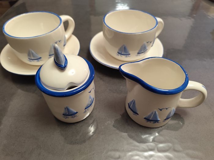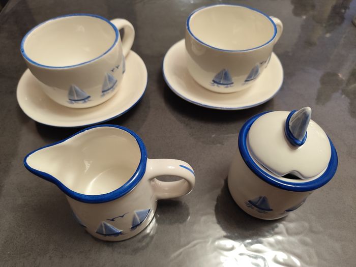 Vend cet ensemble déjeuner thème marin 2 tasses et sous tasses 1 sucrier et 1 pour le lait État neuf Remise en main propre ou frais de port a charge de l'acheteur