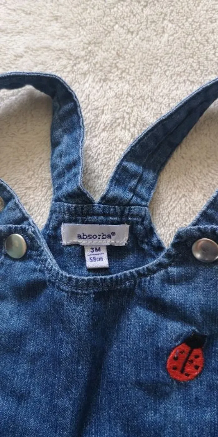 Robe salopette en jean avec motif coccinelle Taille 3 mois / 59 cm Marque Absorba