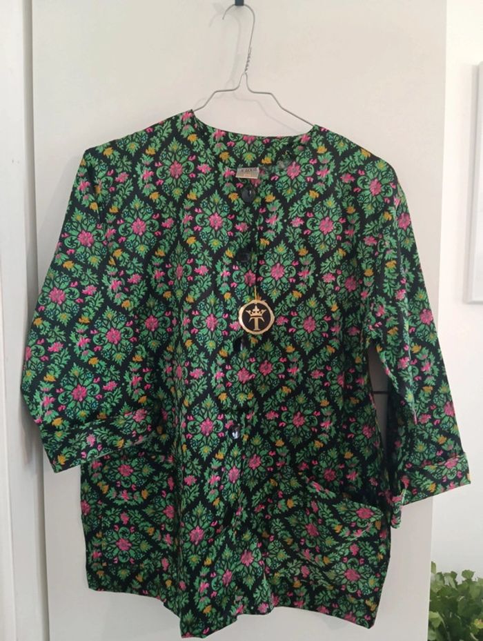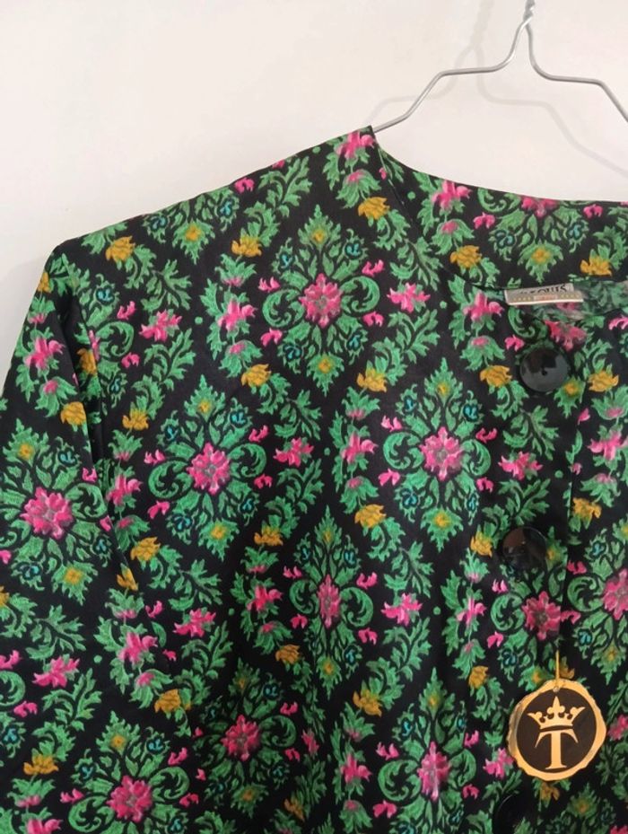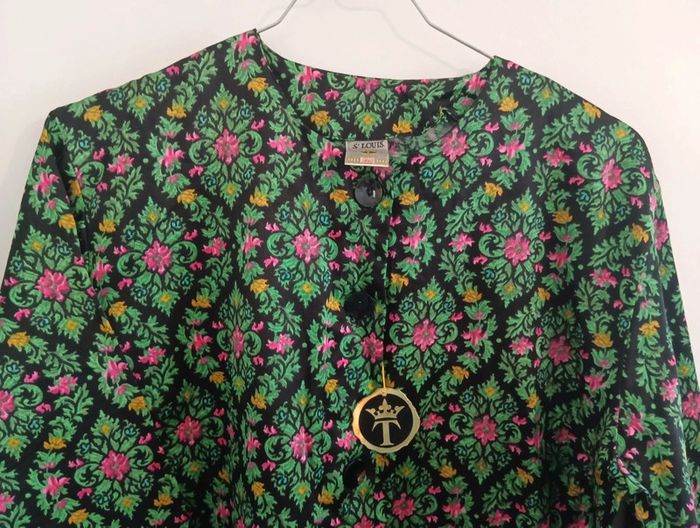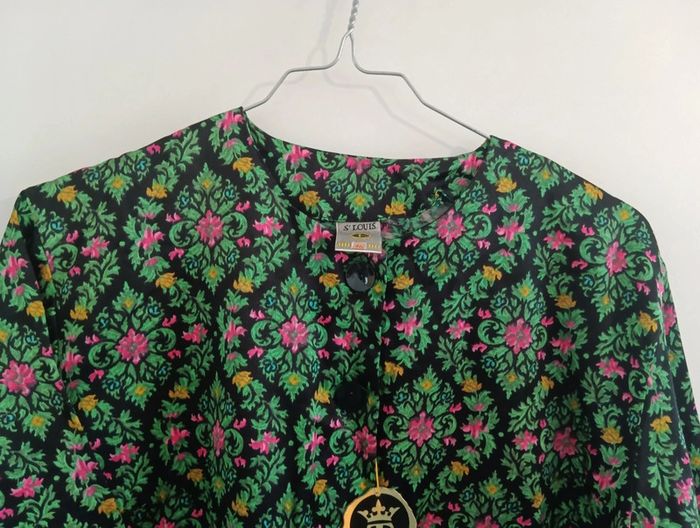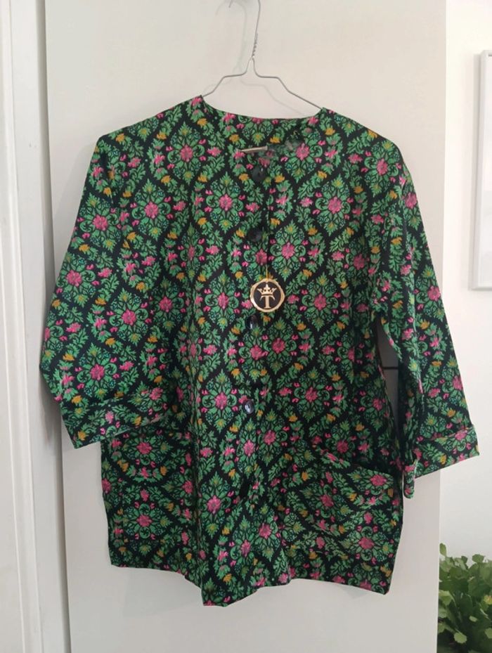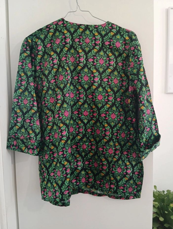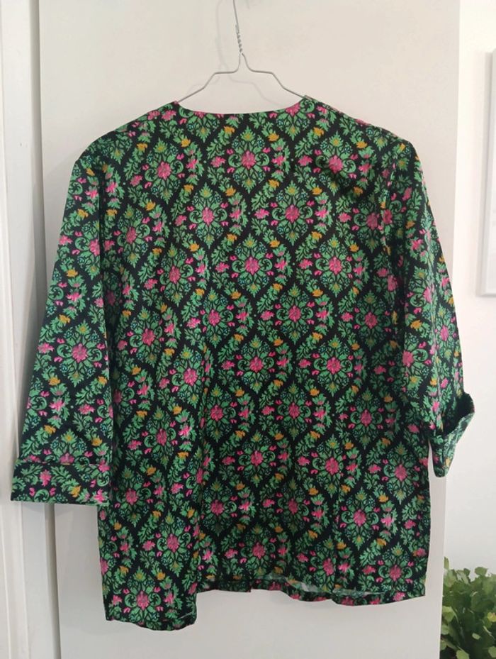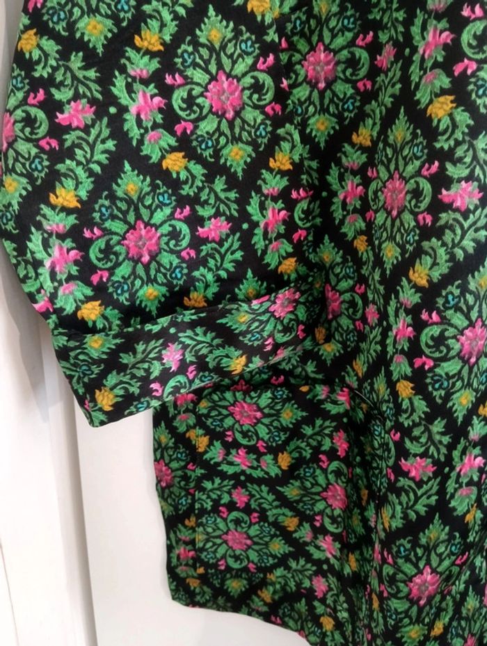 Veste chemise/ haut de pyjama Noir/vert/rose Coton mélangé, Taille 44 estimée à confirmer avec les mesures Épaules 46cm Aisselles 59cm Longueur 71cmm