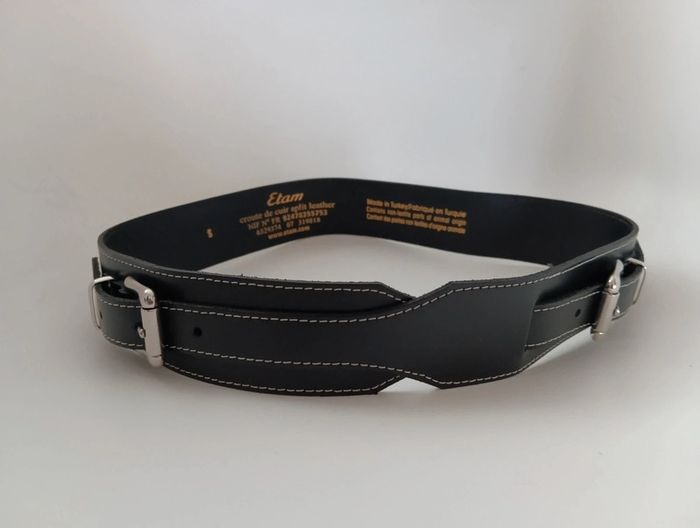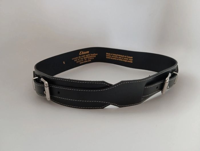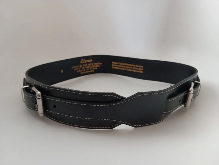 Ceinture noire double boucle Croute de cuir Etam Taille S