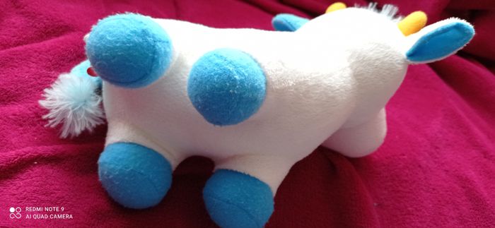 Lot de 3 peluche vache 1 blanche et bleue 1 noire et blanche 1 marron et blanche