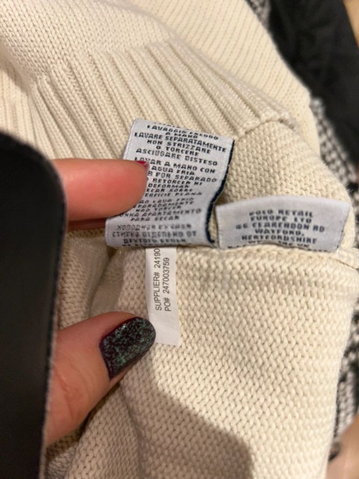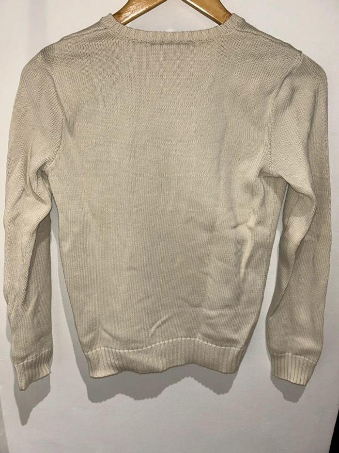 Pull écru/ beige col en V laine 100% coton logo bleu marine Taille M Excellent état