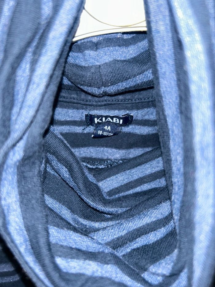 T-shirt manches longues col roulé à rayures bleues avec poche Taille 4 ans Excellent état