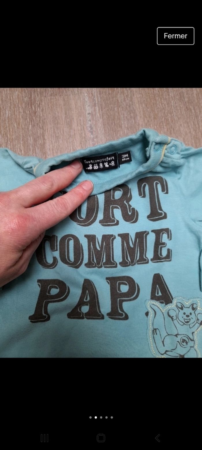 #jessl8262garcon3mois Tee shirt tout compte fait (slogan fort comme papa) Pantalon boite à malices