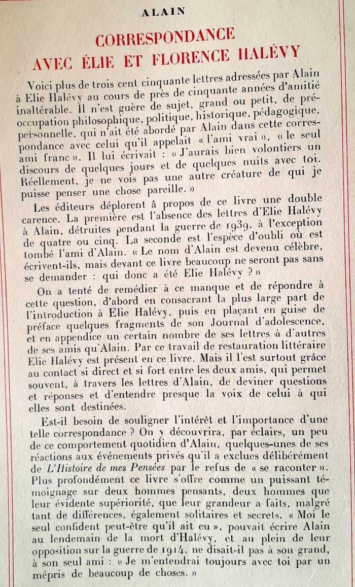 correspondance avec Elie et florence halévy - Alain - photo numéro 9