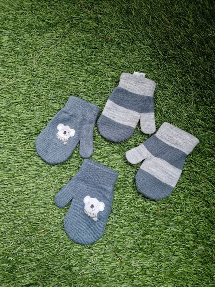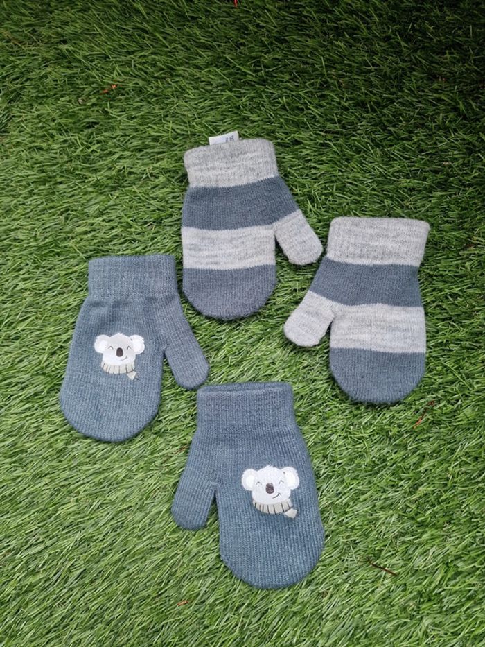 2 paires de moufles C&A en très bon état (paire avec un koala jamais porté, l'autre était mise quelques fois), taille 3 ans