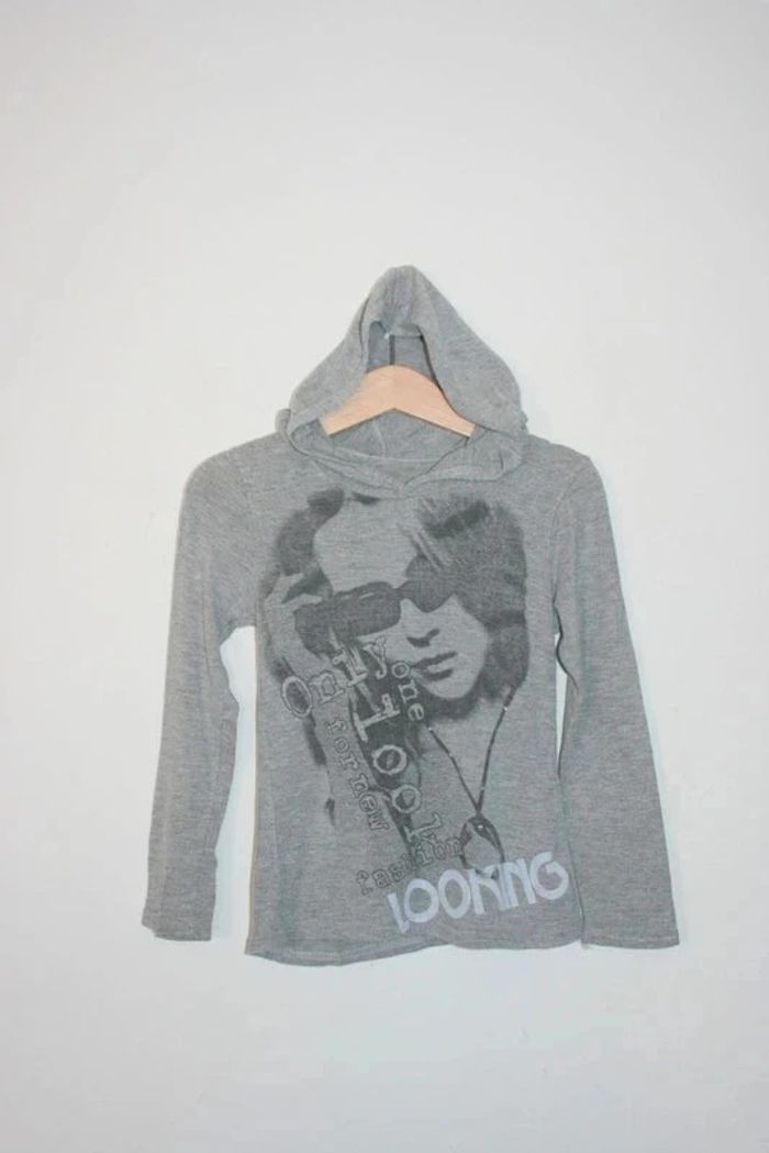 Tee shirt longues manches à capuche gris - photo numéro 1
