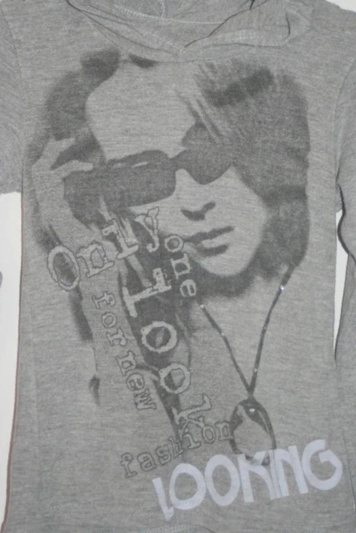 Tee shirt longues manches à capuche gris - photo numéro 2