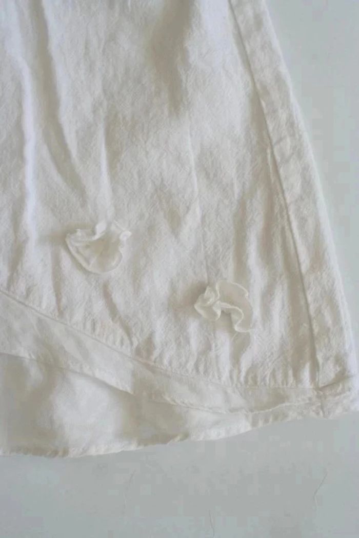 Jupe en lin blanc cassé Mademoiselle Petit Boy, taille élastique, grand 4 ans, légère tâche en dessous de la fleur gauche, 70g