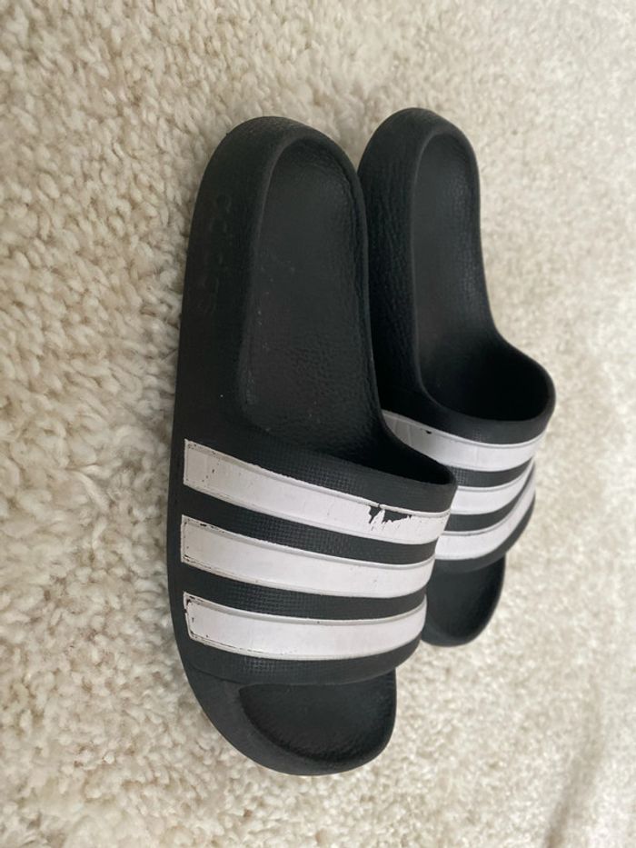 Taille 30 Le décor blanc est abimé sur la claquette droite. (Voir photo)