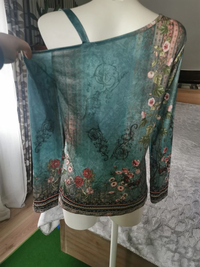 Haut vert à fleur épaule découverte bretelle chaîne - photo numéro 7