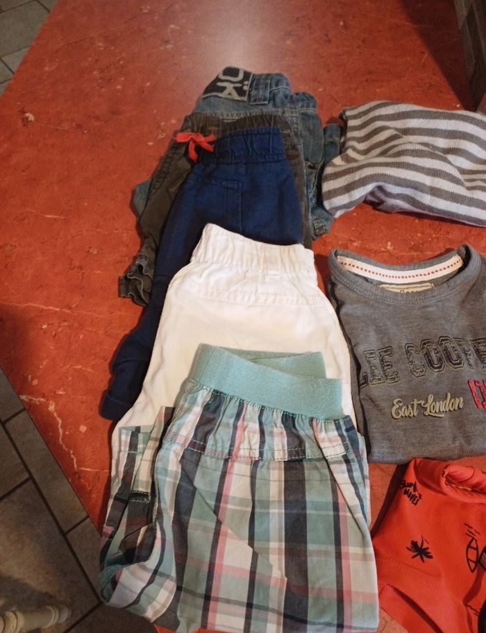 Lot comprenant 1 blouson sans manches 5 T.shirts manches courtes 1 débardeur 1 chemisette 1 maillot de bain 1 pull sans manche 5 shorts Différentes marques : marese, lee cooper, vertbaudet, okaidi, orchestra, kid kanai.... Possibilité d avoir plus de photos
