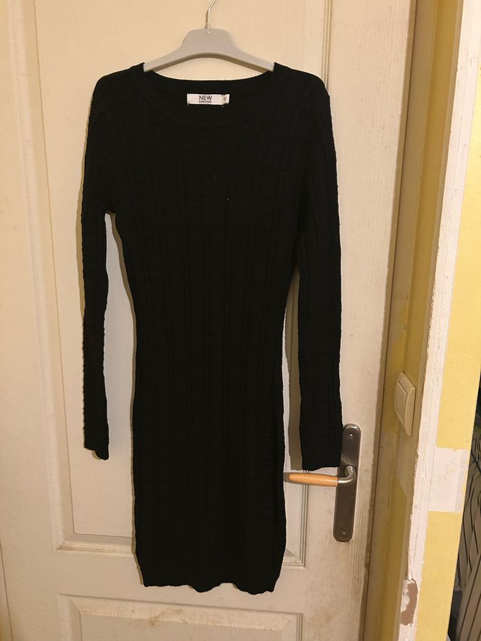 Vends robe noir manches longues coupe droite en très bon état