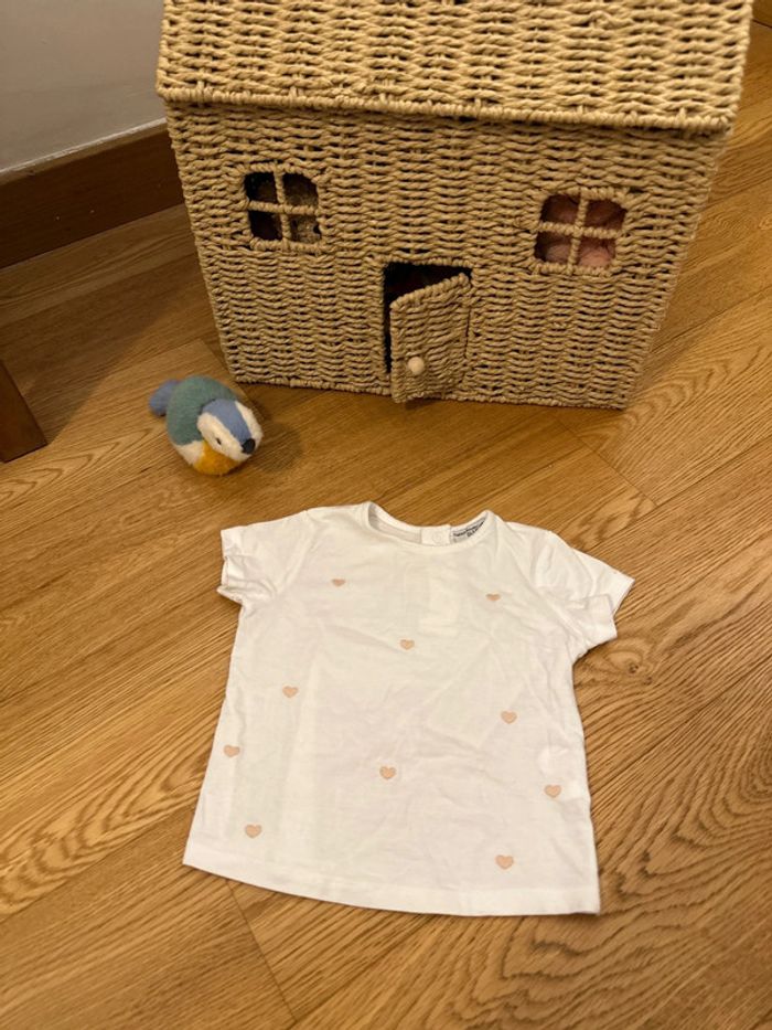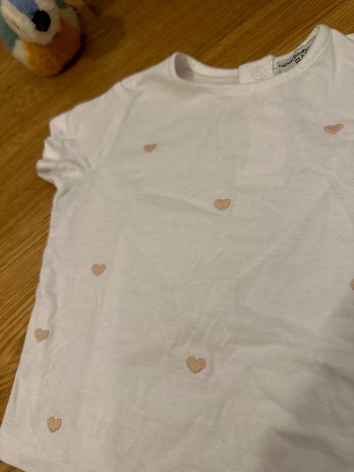 T-shirt FPC avec cœurs rose brodés 18 mois #tshirt #fpc #fashionprivatecompany #coeur #broderie #bébé #bébéfille #tshirtfille