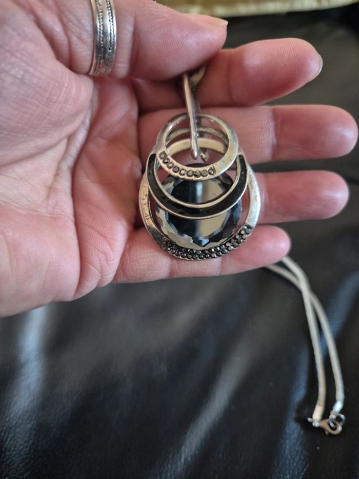 ➡️mes autres annonces de bijoux et accessoires👉 #cg89bijoux 😁réductions activées des 2 articles ! un collier avec un lacet en satin gris. le pendentif est composé de cercle et d'un grand cristal de couleur gris. Le lacet peut être remplacé par une chaine ou autre, il mesure 40 cm de longueur #sautoir #collier #cristal #bijoux #lacet #cordon #satin