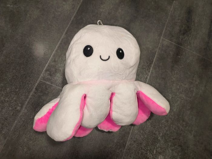 Peluche pieuvre qui change de visage rose et blanc