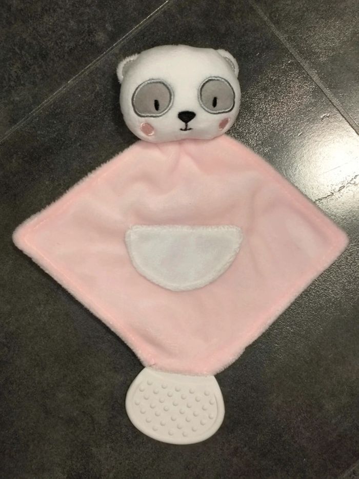 Doudou panda fille rose blanc gris avec partie à mâcher neuf