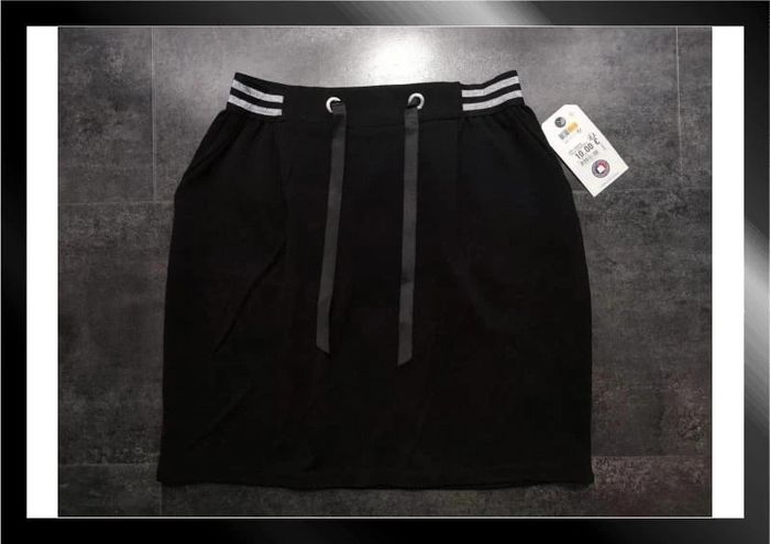 Jupe femme courte taille 36 mais peut aussi convenir à un M noir gris argenté ceinture élastique miss frenchy