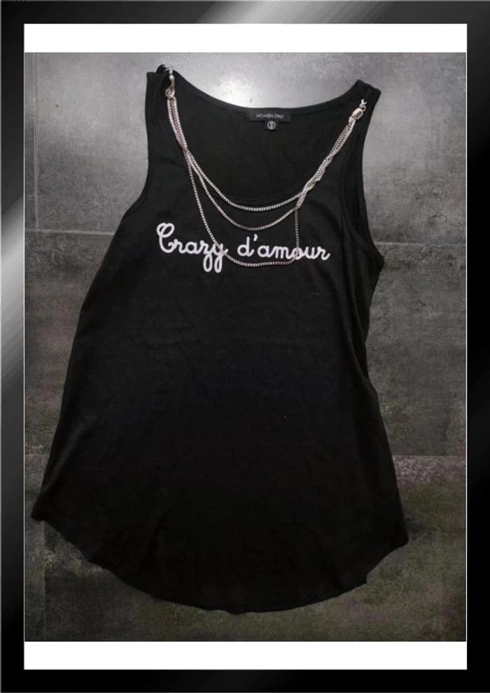 Top débardeur t shirt femme noir crazy d'amour avec chaînes women only taille S 36