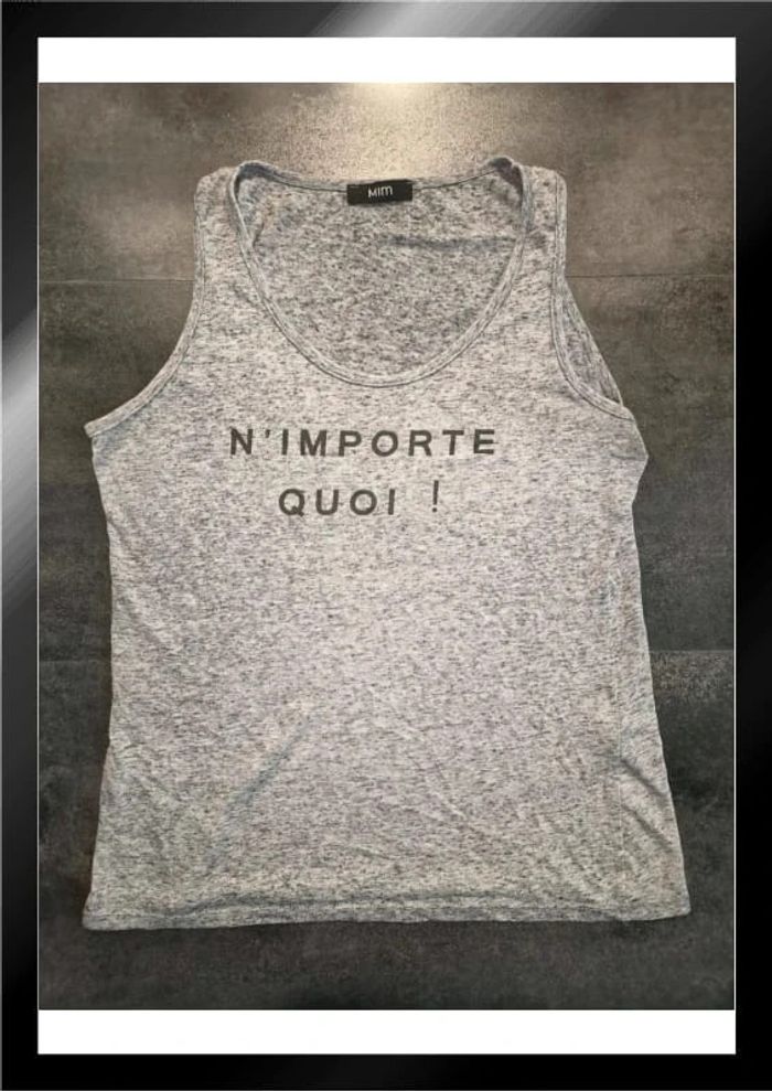 T shirt débardeur femme gris noir n'importe quoi taille S M mim