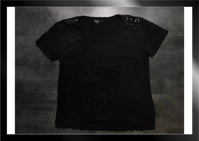 T shirt femme gris foncé noir avec strass et clou sur l'épaule taille M jennyfer