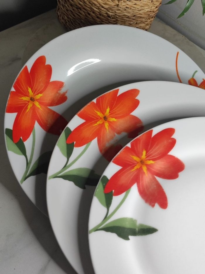 Assiettes plates fleuris porcelaine - photo numéro 3