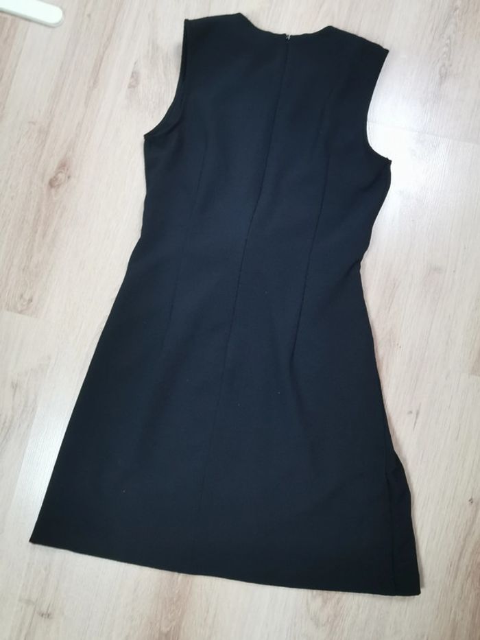 Robe noire de cocktail Promod. Petite robe noire, en très bon état, très agréable au toucher, plus d'étiquette de composition ni de taille, je pense que c'est du 34. robe cintrée, sans manches avec fermeture éclair au dos. Merci de regarder les mesures avant tout achat. Mesures : Largeur dos entre les aisselles : 41 cm Largeur dos entre les épaules : 32 cm Largeur taille : 36 cm Longueur : 86 cm Poids : 225g #robenoire #petiterobenoire #robedecocktail #robepromod #robetaille34