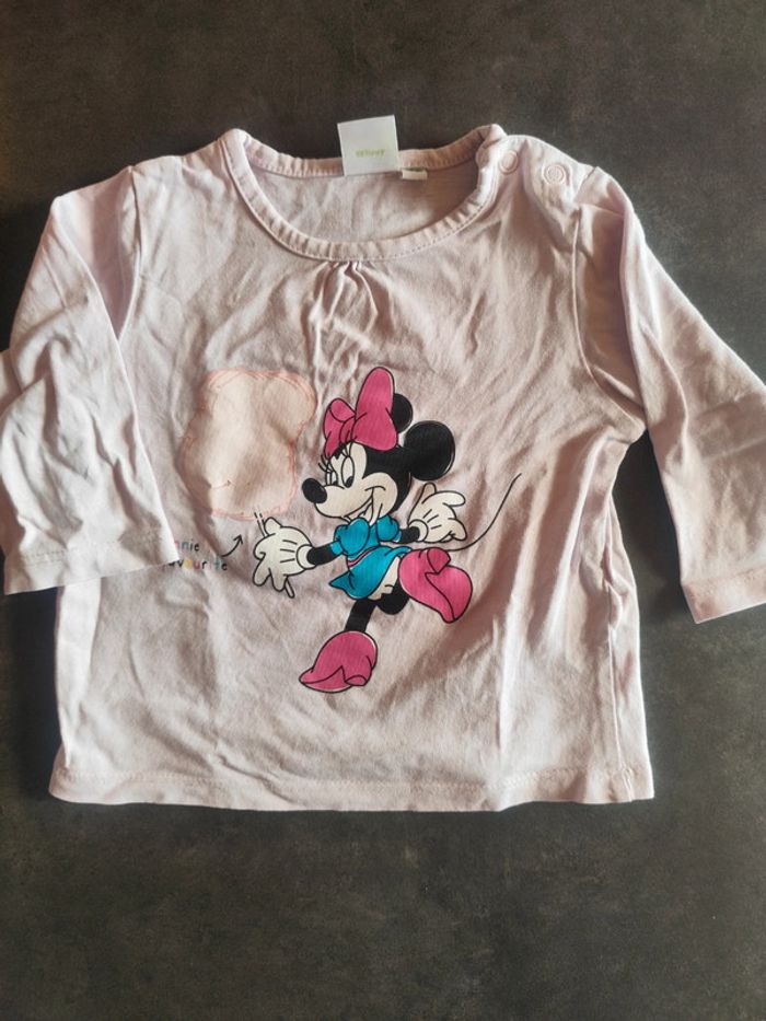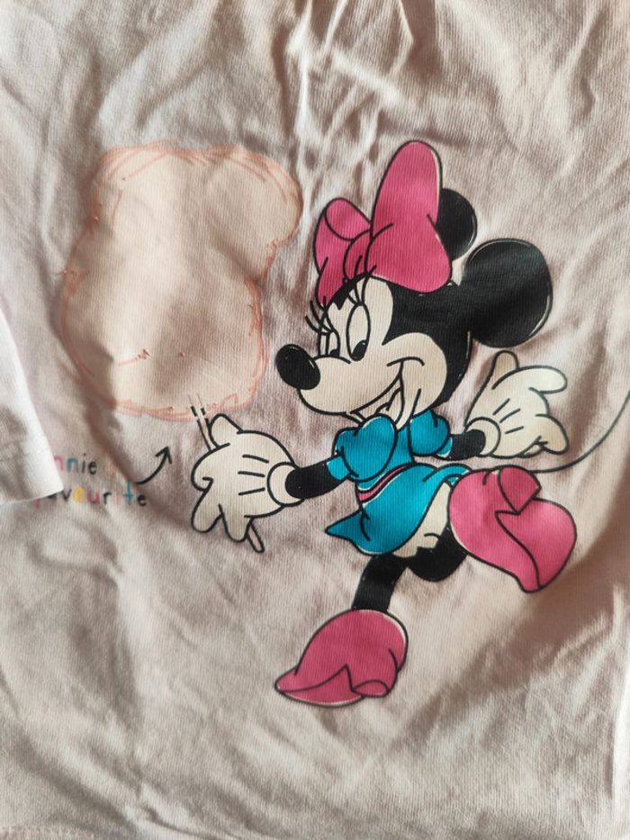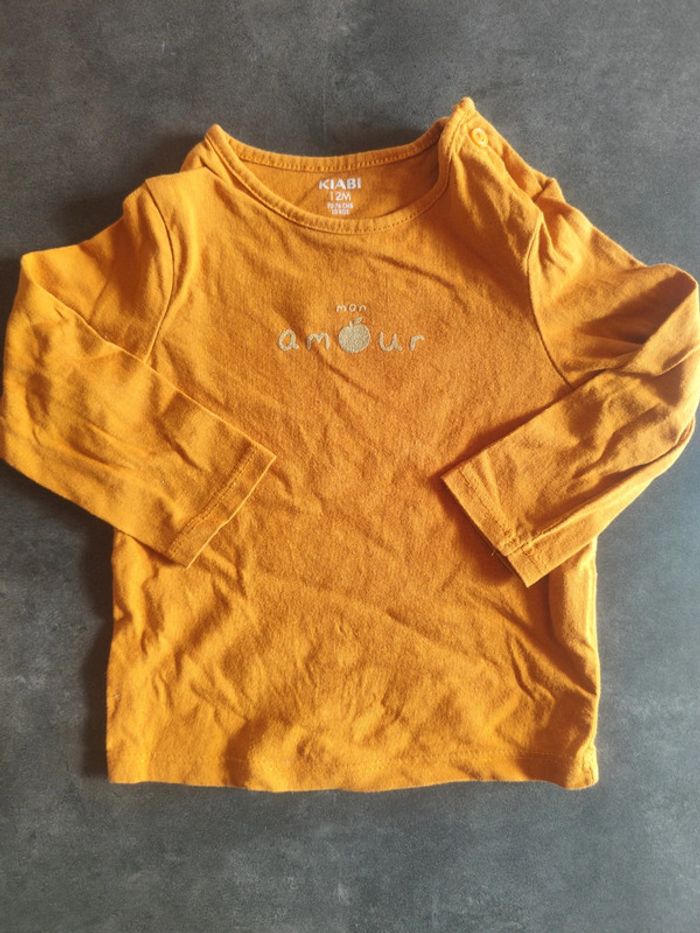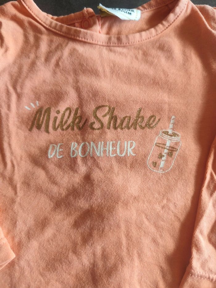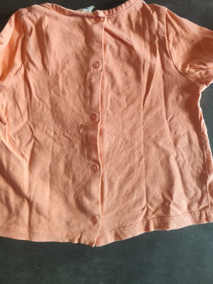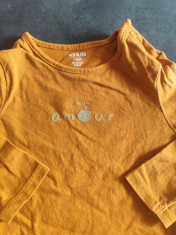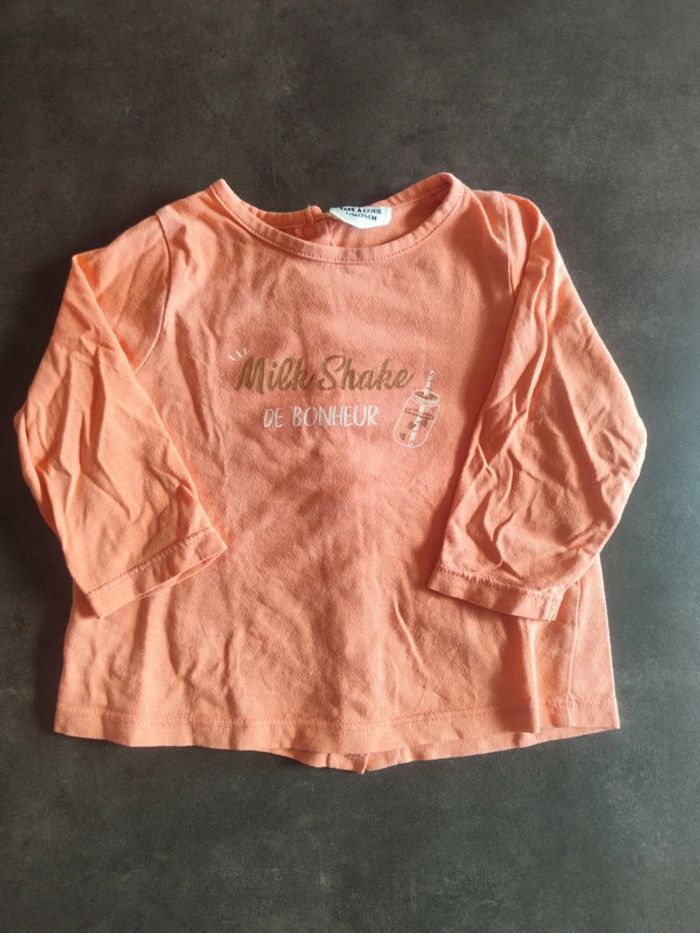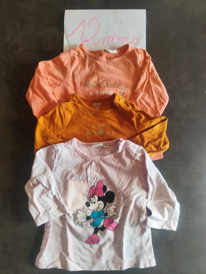 Lot de 3 tee-shirt en bon état. 1 rose pâle Minnie, un moutarde avec inscription mon amour et un corail ouvert sur l'arrière