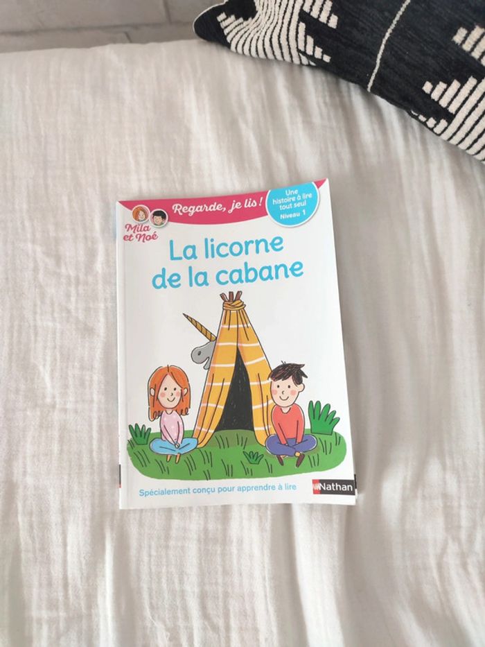 Regarde, je lis avec Noé et Mila - Lecture CP - Niveau 1 - La licorne de la cabane Le texte est adapté pour chaque enfant selon sa progression : - les lettres muettes sont grisées - l'enfant peut lire en toute autonomie remise activée sur les lots