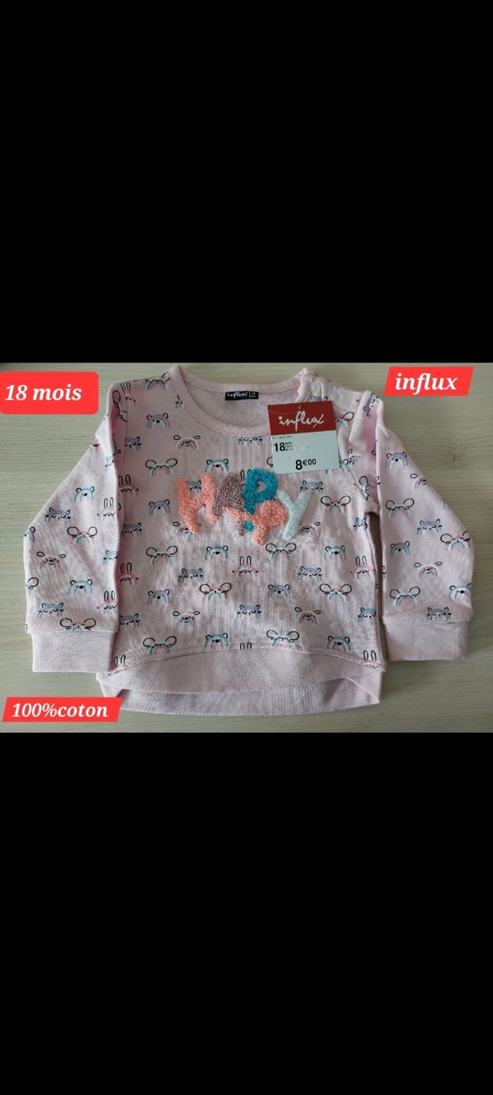 Vends Pull fille 18 mois écrit HAPPY dessus Il est en très bon état Il a été mis Maison non fumeur