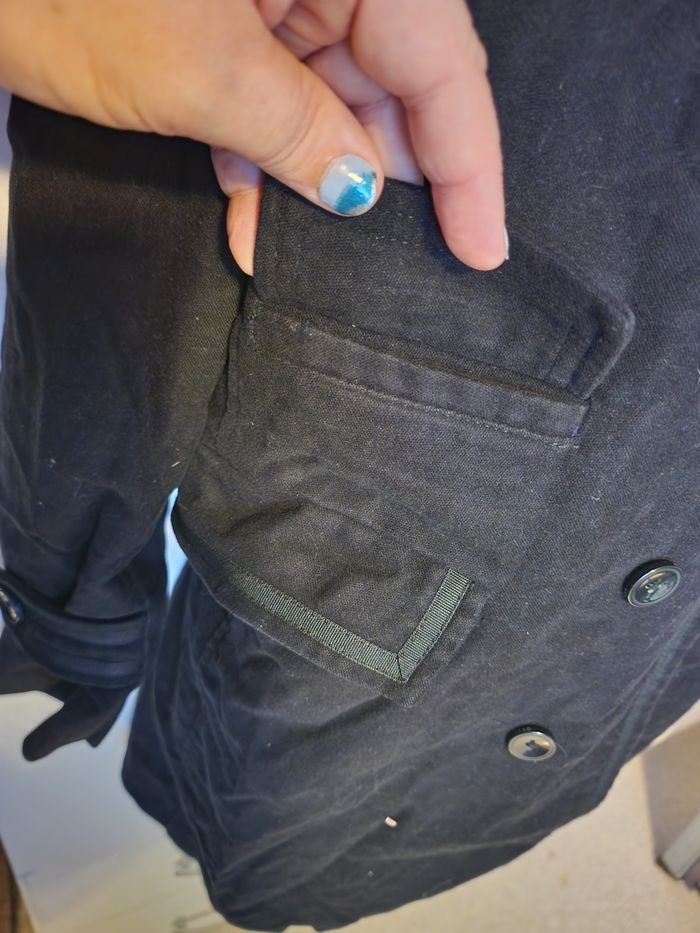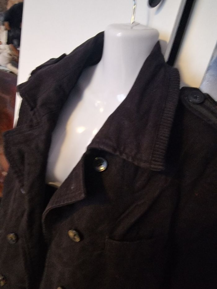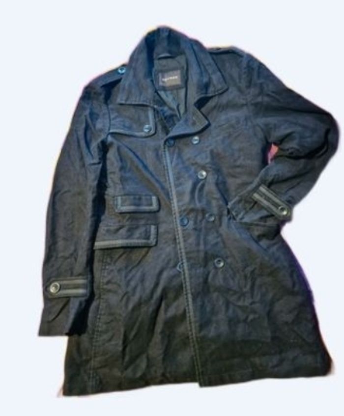 Vous aimez le style classe et habillé ? Optez pour ce superbe manteau trench. De taille mi-longue (voir mesure plus bas) sa coupe cintrée démarquera votre carrure pour un effet masculin, élégant et, sûre de vous. Poches extérieures fermées par boutons mais aussi 2 poches intérieures pour y glisser votre porte-feuille, portable ou mouchoir. (2 boutons neufs ajouter dans la poche avant) Mesure aisselles 50cms à plat Mesure taille 46cms à plat Hauteur 80cms