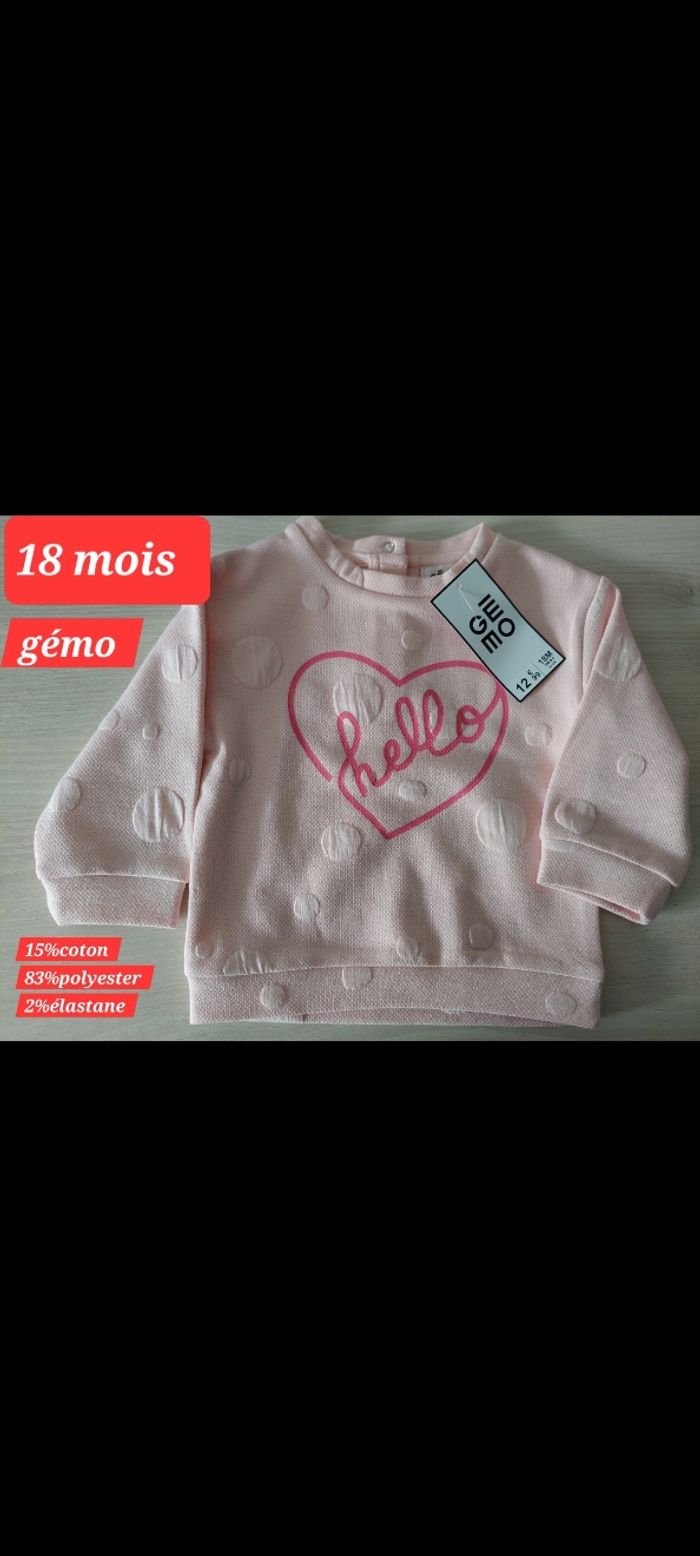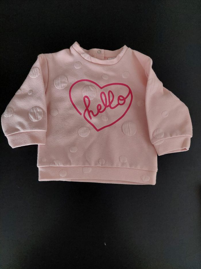 Vends Pull fille 18mois avec un cœur écrit hello Il est en très bon état Il a été mis Maison non fumeur