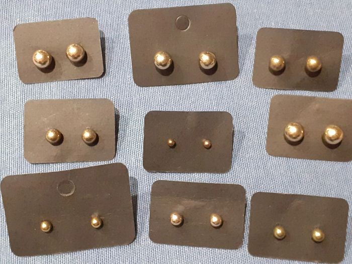Lot de 9 paires de boucle d'oreille fantaisies en forme de boule dorée - photo numéro 1