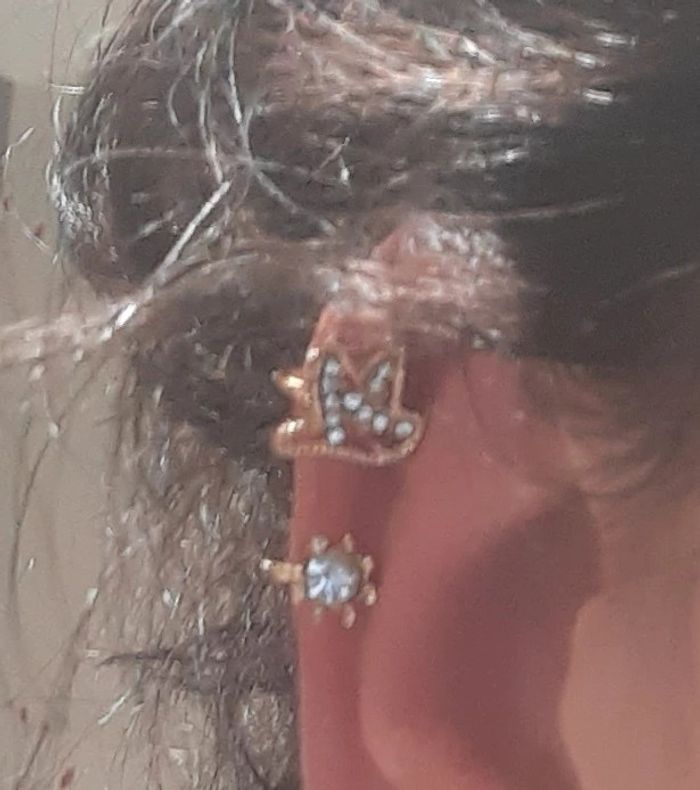 Lot de 2 bijoux à fixer sur le cartilage de l'oreille en haut comme sur les photos. En acier inoxydable. En excellent état Envoi rapide,soigné et sécurisé
