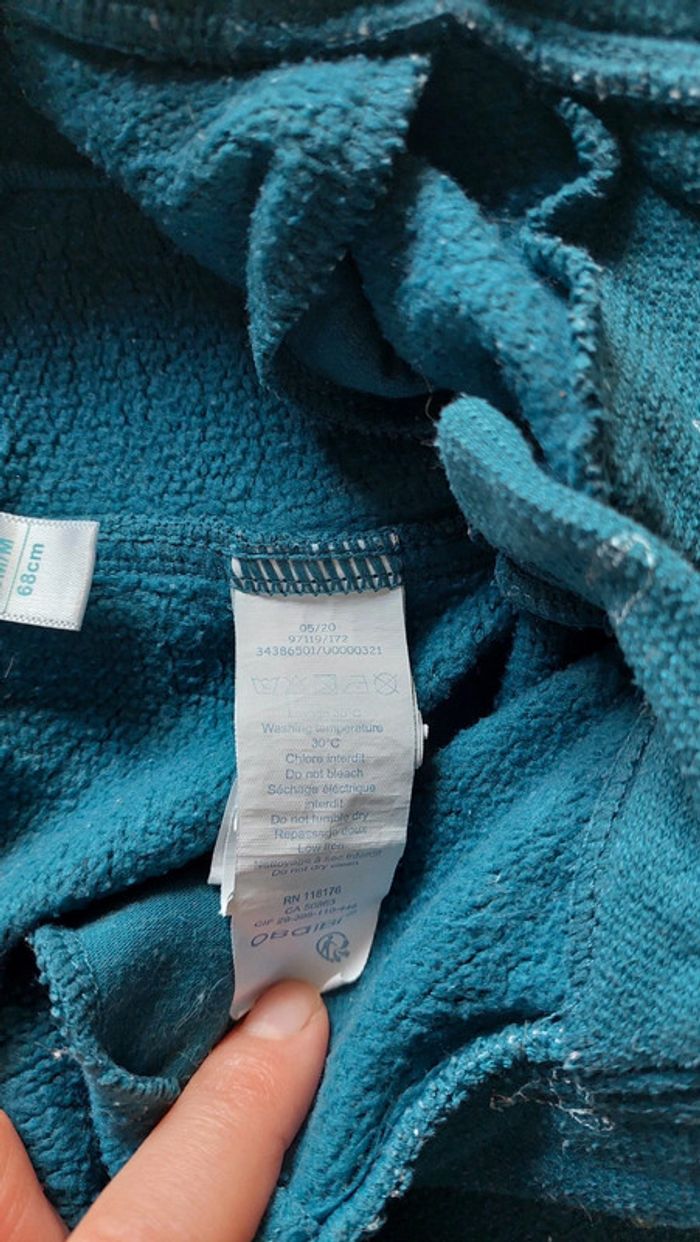 Pantalon chaud marque obaïbi taille 6 mois. Réglable à la taille. Bleu canard. Très bon état mais bouloche un peu. Réduction sur les lots
