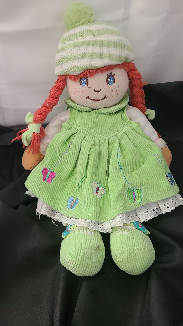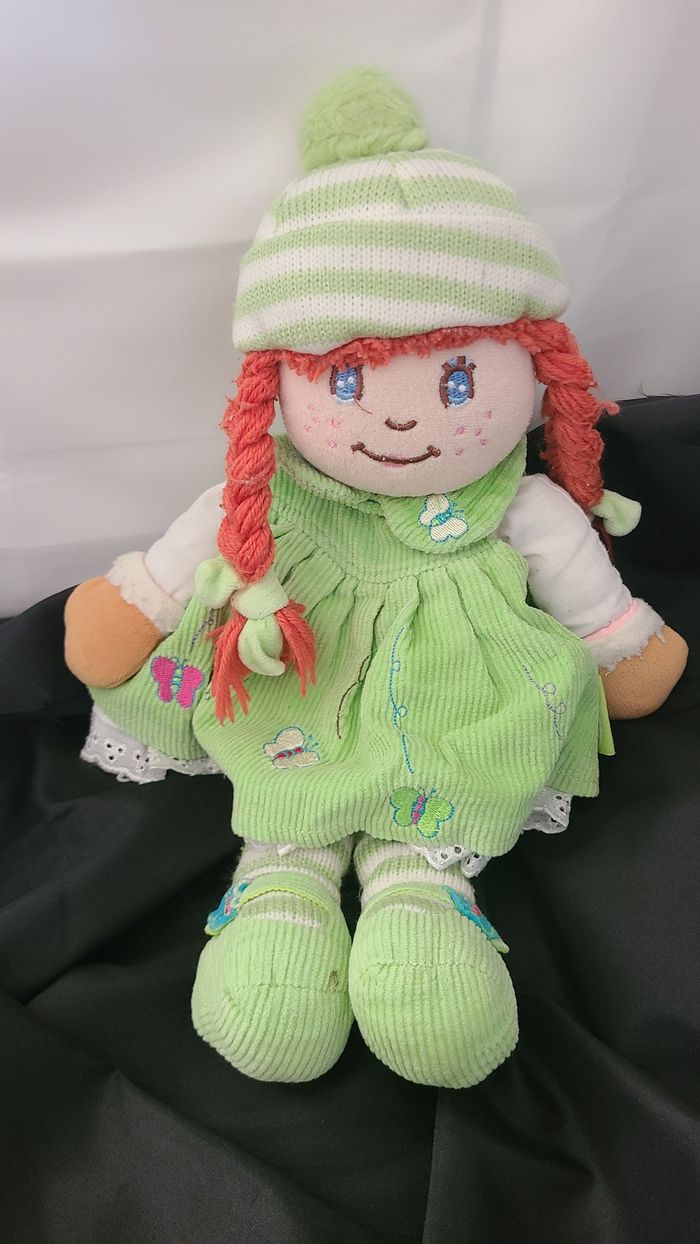 Doudou poupée verte cheveux rouge - photo numéro 1