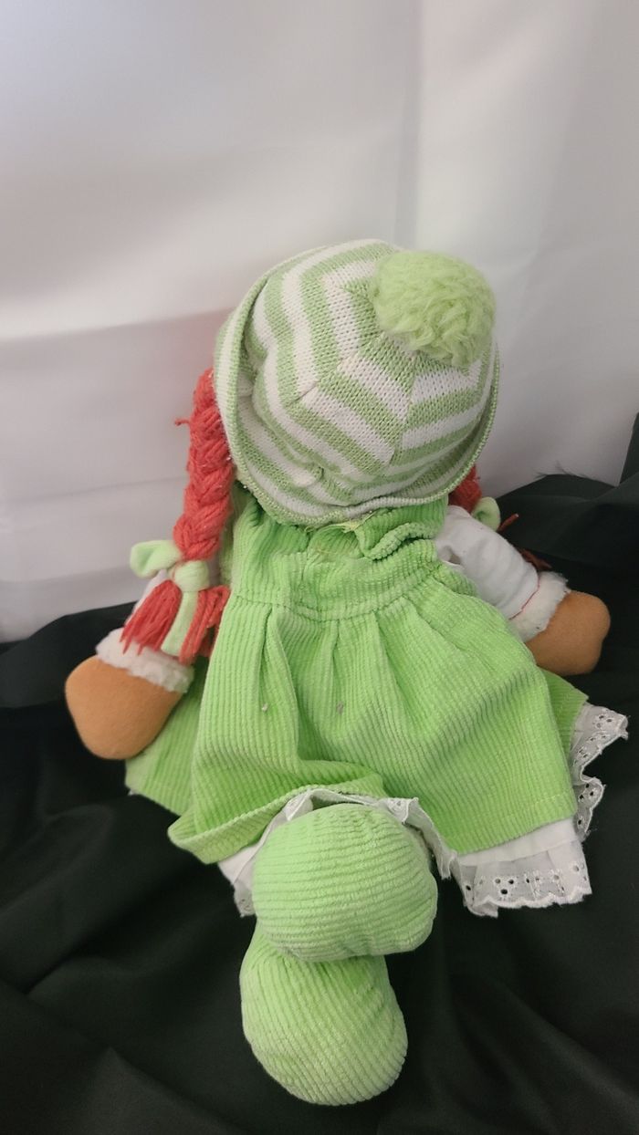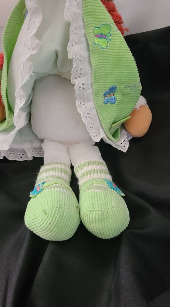 Doudou poupée verte cheveux rouge - photo numéro 3