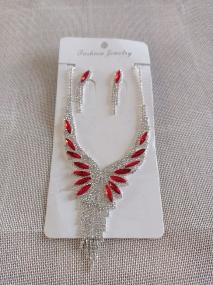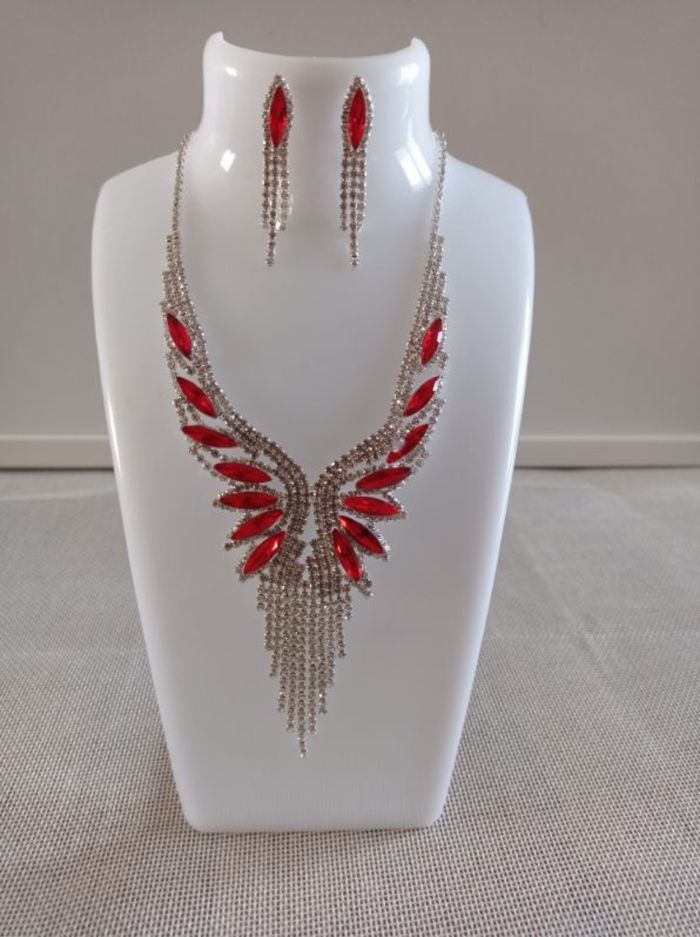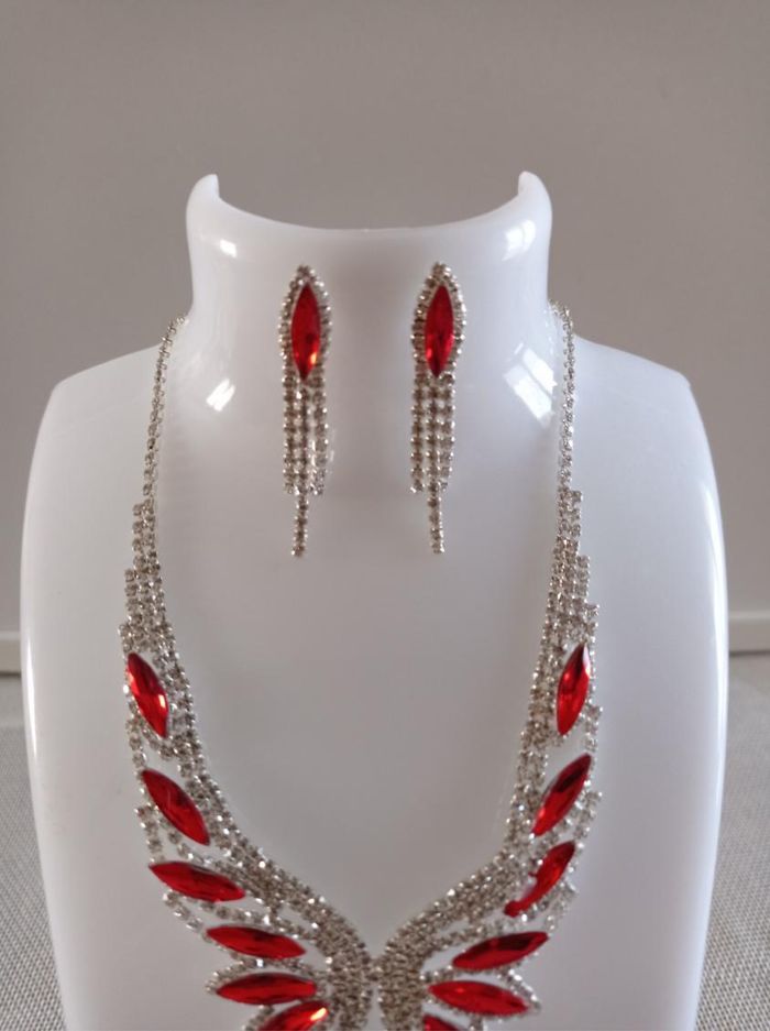 Ensemble de bijoux collier et sa paire de boucle d’oreille en pierre blanche rouge pendante. Idéal pour fête ou mariage. Très bonne qualité, très élégant, totalement neuf, vendu dans leur emballage d’origine. Expédition rapide après votre commande