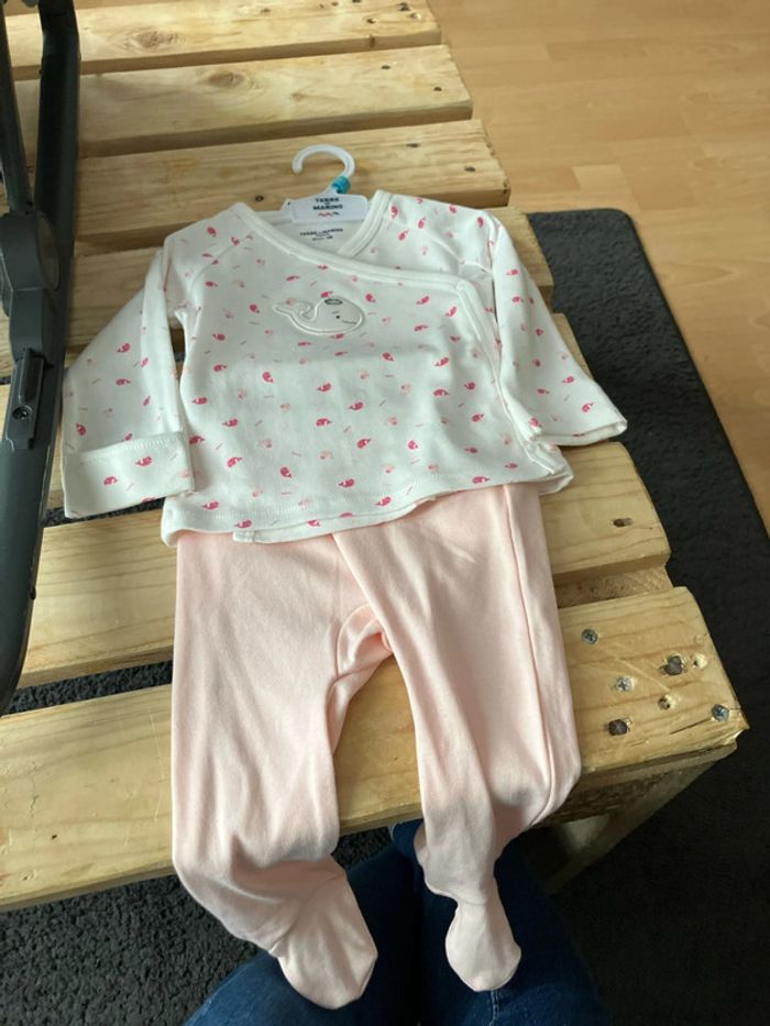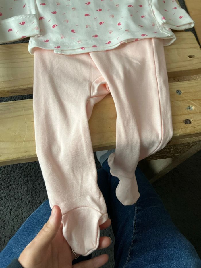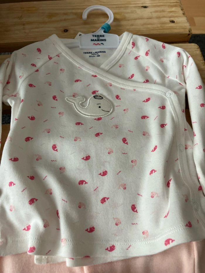 Ensemble deux pièces neuf avec étiquette Terre de marin motifs baleine Beige rose pale 6 mois