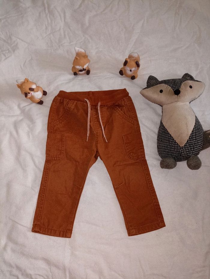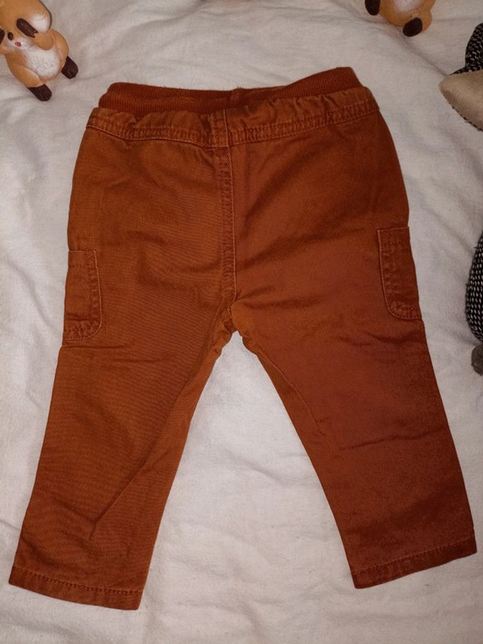J'en ai un deuxième exactement le même et même taille. Parfait pour des jumeaux, demandez moi pour des photos ☺️. Ficelle pour serrer le pantalon. Poches sur les côtés. Couleur marron / camel/ rouille