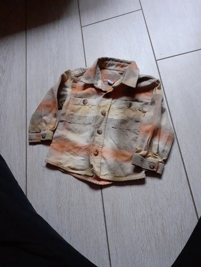 Chemise carreaux  orange  kaki touché  flanelle - photo numéro 1