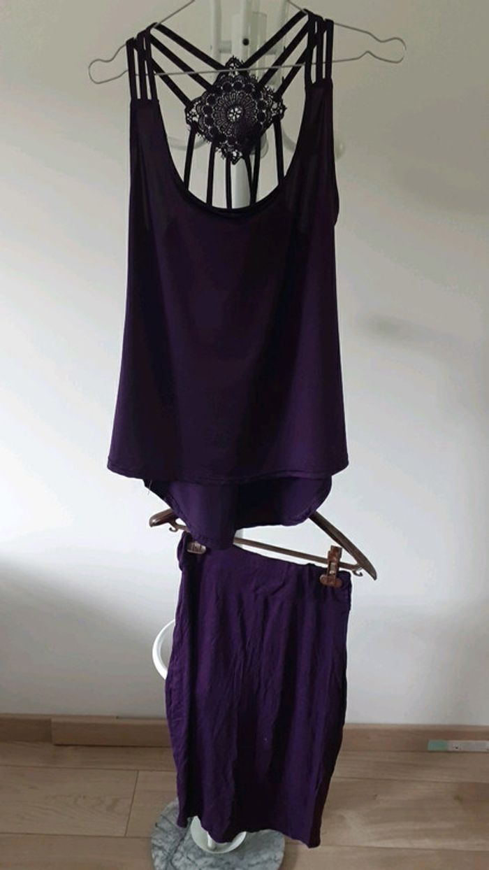 Ensemble   2pièces violet  débardeur  +jupe - photo numéro 2