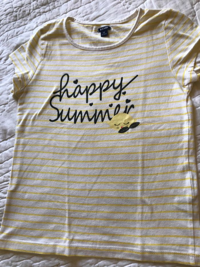 Tee-shirt  rayé  blanc jaune Happy summer - photo numéro 1