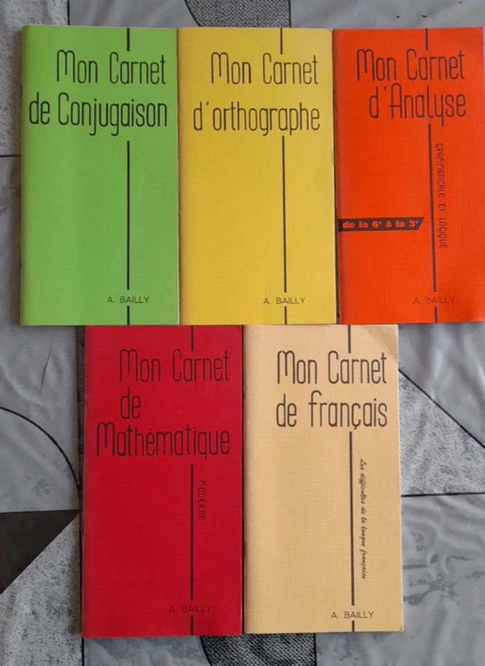 5 livres mon carnet de Bailly. Pratique pour les notions de base en matières principales niveau collège. État neuf, juste vieilli par le temps