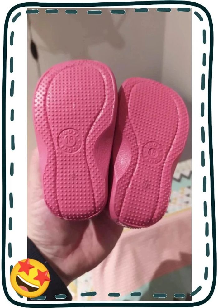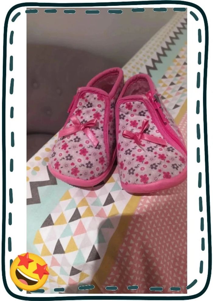 Chaussons montants taille 18 de la marque tooti (très bonne qualité) Roses avec des fleurs Quelques petites traces d'usure visibles sur les photos sinon en très bon état Prix neuf 27€ #dinooblofille