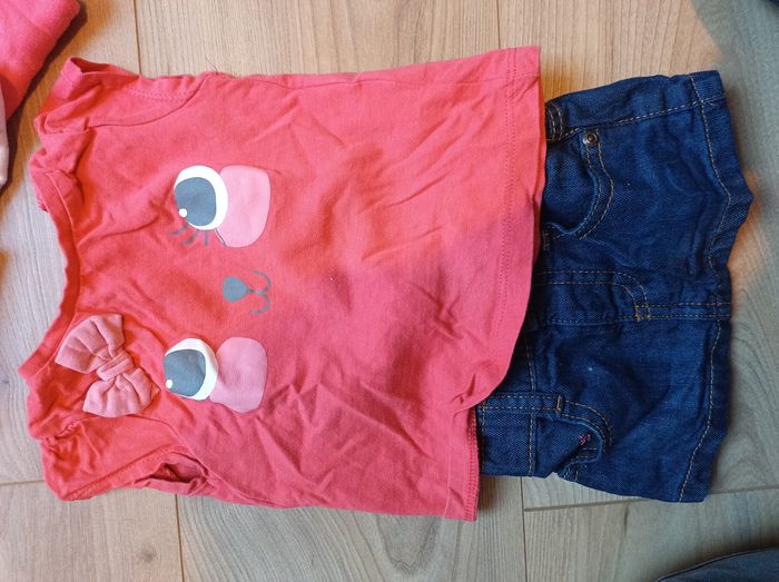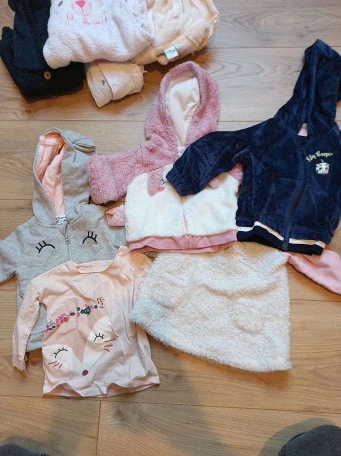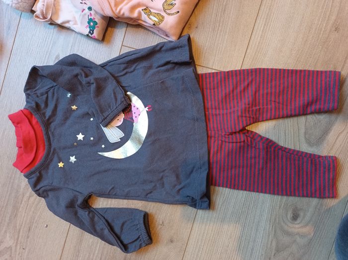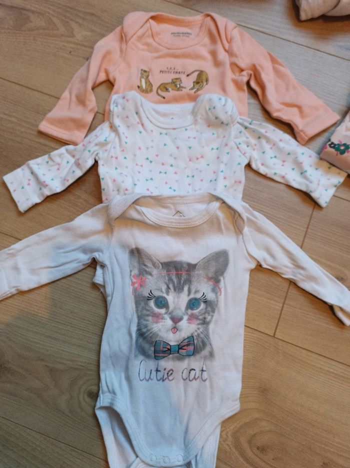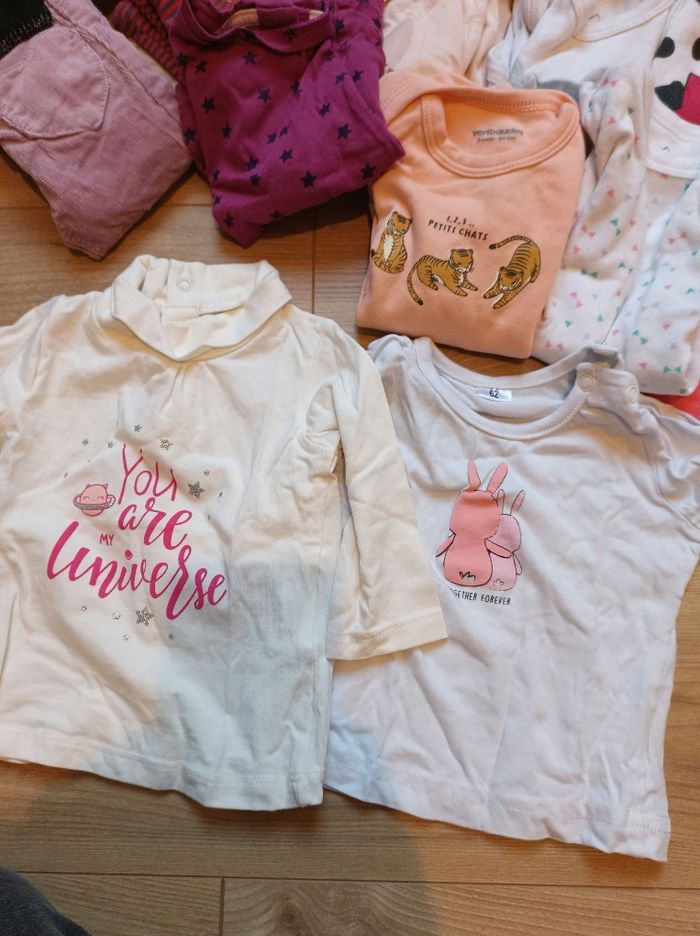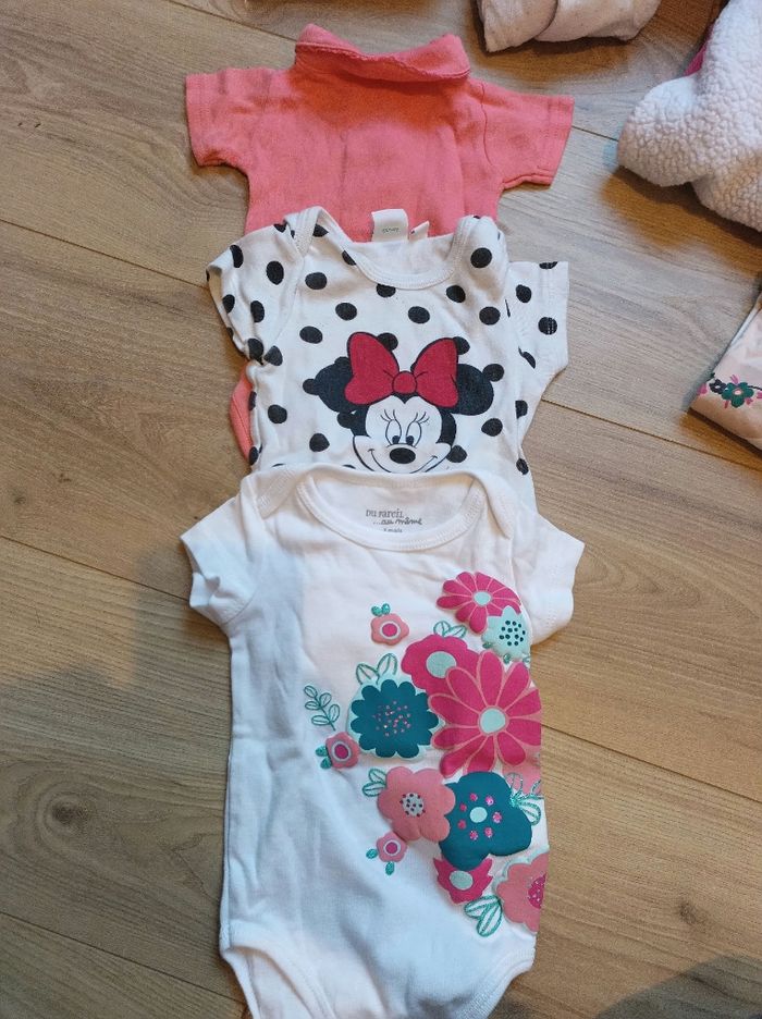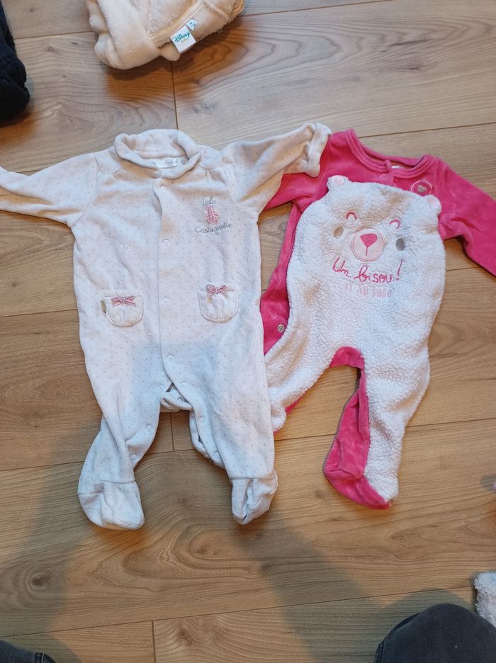 2 pyjamas (1,5€ pièce) 1 combi Minnie neuve (5€) 3 gilets, 1 boléro, 1 poncho (1,5€ pièce) 2 t-shirts manches courtes (1,5€ les deux) 1 jupe, 1 pantalon (1,5€ pièce) 1 ensemble robe legging neuf (2€) 1 robe (1,5€) 3 t-shirts manches longues (1€ pièce) 6 bodys 3 manches courtes/ 3 manches longues (1€ pièce) Marques diverses: Verbaudet surtout, Disney, Gémo... Aucune tâche #lotbebefille #lotbebe3mois #lotvetements