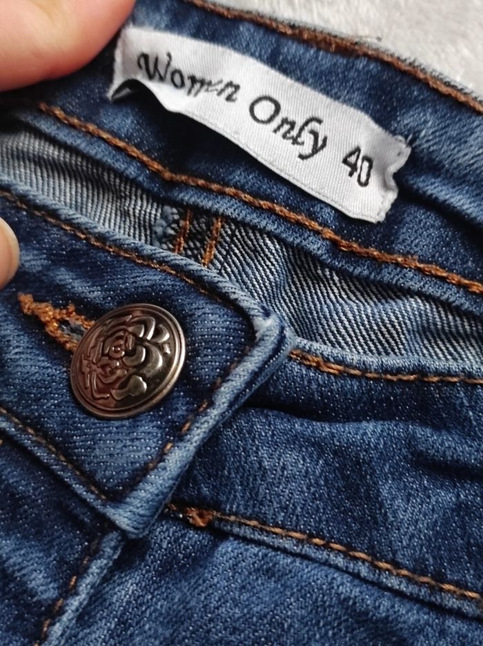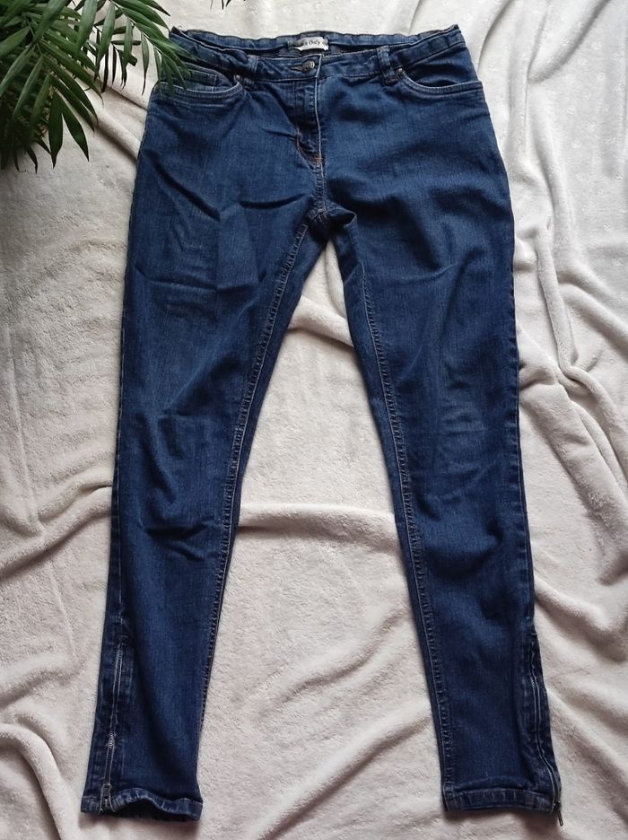 petit jean slim / skinny peu porter en parfait état. Petite fermeture éclair aux chevilles. Marque women only taille 40.